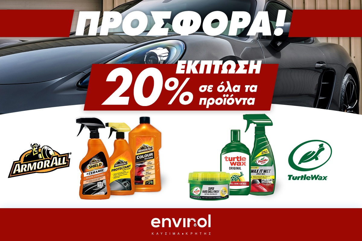 Νέες, μοναδικές προσφορές αποκλειστικά στα πρατήρια Envirol! Αποκτήστε όλα τα προϊόντα Armor All και Turtle Wax με -20% και δώστε στο όχημά σας την απόλυτη …