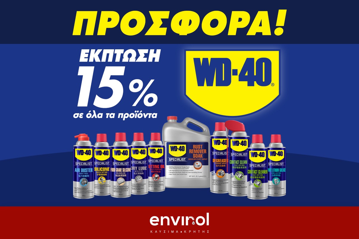 Νέες, μοναδικές προσφορές αποκλειστικά στα πρατήρια Envirol! Το Νο.1 λιπαντικό και αντισκωριακό, το WD-40 με έκπτωση 15%! Το WD-40 με τις πολλαπλές του δράσεις και …