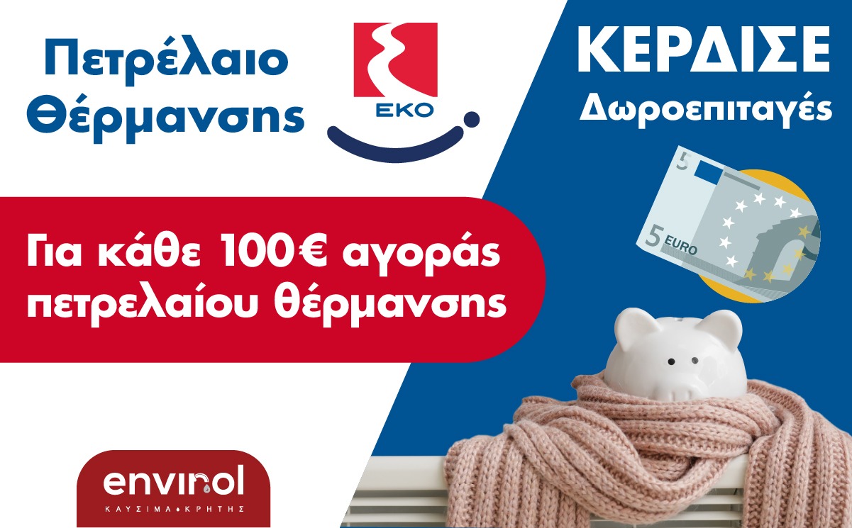 Γιορτές σημαίνουν οικογενειακές στιγμές, ζεστασιά και… ΕΚΟ Smile! Στα Πρατήρια Καυσίμων Envirol σας εξασφαλίζουμε τη ζεστασιά, προσφέροντάς σας για κάθε 100€ αγοράς Πετρελαίου Θέρμανσης EKO, …